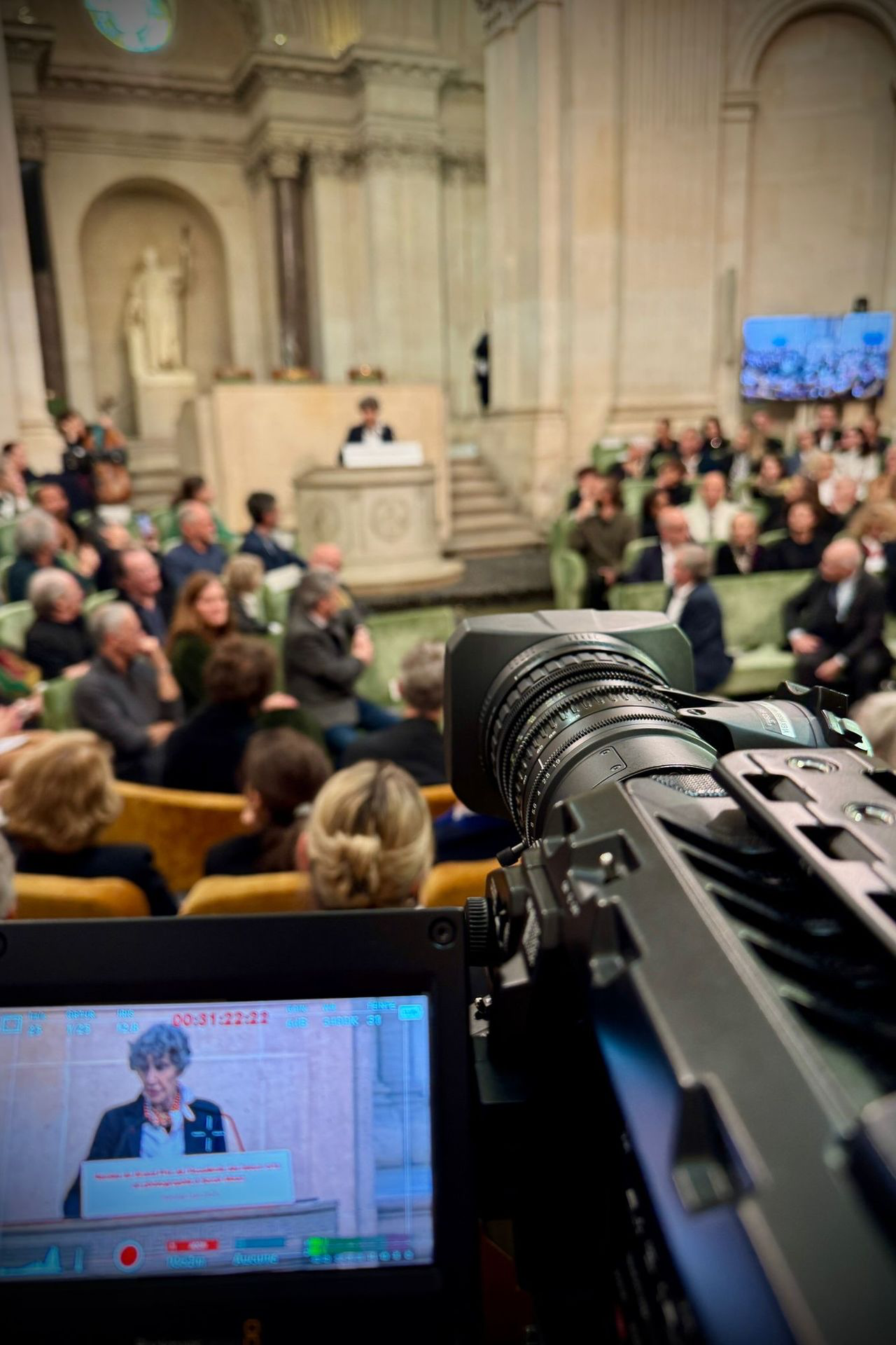 Sous la Coupole de l’Institut de France, Prodster a assuré la captation et la retransmission live du Grand Prix de l’Académie des beaux-arts remis à Sarah Moon.