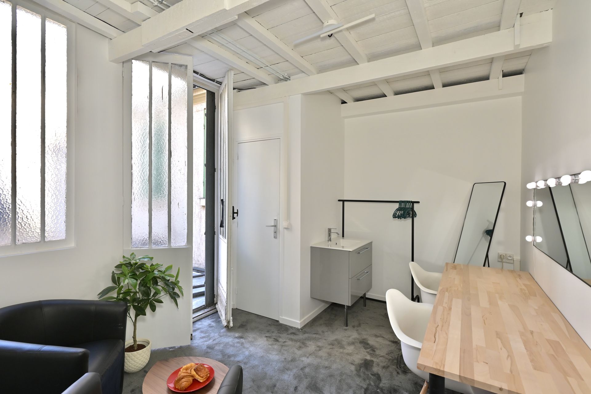 Un studio de 120m² au cœur de Montmartre, pensé pour la production audiovisuelle. Son plateau modulable de 25m² comprend un cyclorama fond vert, idéal pour l’incrustation, et un pendrillon noir.